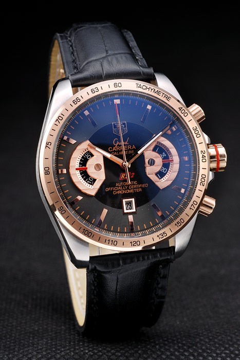El reloj cuenta con un movimiento de cuarzo de calidad Miyota, lo que garantiza una precisión excepcional en la medición del tiempo. Su diseño incluye detalles que hacen de este reloj un accesorio de lujo, como el bisel plateado en oro rosa con tachymeter y la correa de piel de cocodrilo negro con cierre de oro rosa.