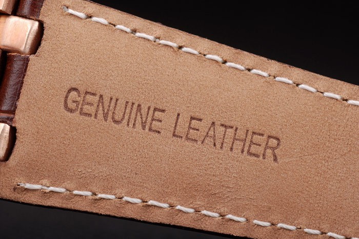Bracelet: Calor en relieve correa de piel de cocodrilo marrón Audemars Piguet con costuras en blanco y Audemars Piguet grabado oro rosa plateado plegable en clasp