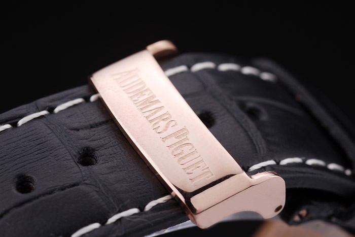 Bracelet de acero inoxidable: El calor en relieve correa de piel de cocodrilo negro Audemars Piguet con Audemars Piguet grabado plegable en acero inoxidable clasp