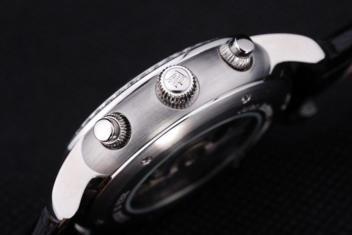 Crown: acero inoxidable corona calado con Audemars Piguet logotipo y dos coronas con teclas más pequeñas a cada lado de it