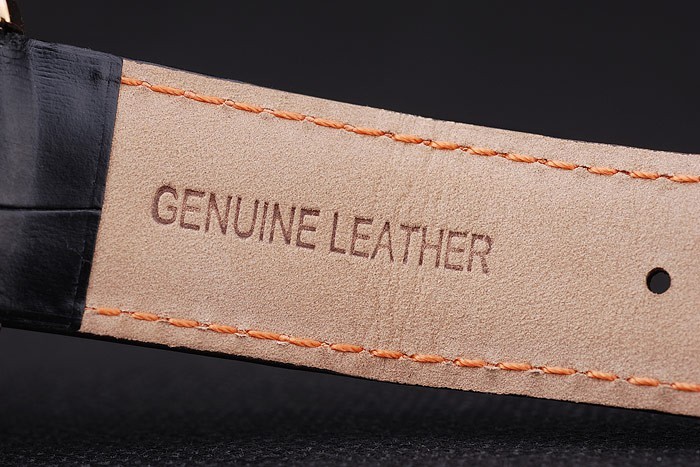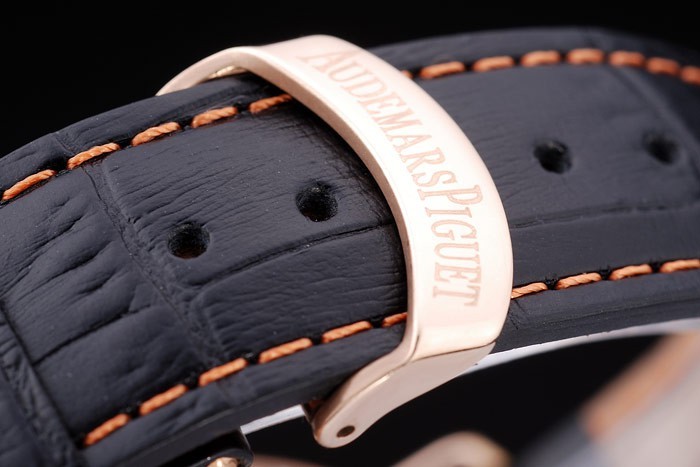 Bracelet de acero inoxidable: correa de piel de cocodrilo Negro con costuras de color naranja y el calor en relieve el nombre y el logotipo de Audemars Piguet y un Audemars Piguet inscriben rosa de 18 quilates chapado en oro-flip-sobre el gancho clasp