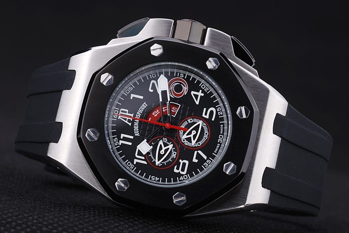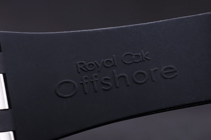Bracelet: correa de caucho Negro con relieve de calor sello Audemars Piguet Royal Oak Offshore y un Audemars Piguet inscrito ion-plateado gancho hebilla clasp