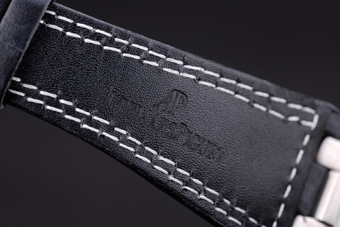 Bracelet de acero inoxidable: El calor en relieve Audemars Piguet Suiza logo Hecho y correa de cuero negro con hilo doble costura blanca y Audemars Piguet grabado de acero inoxidable gancho hebilla clasp
