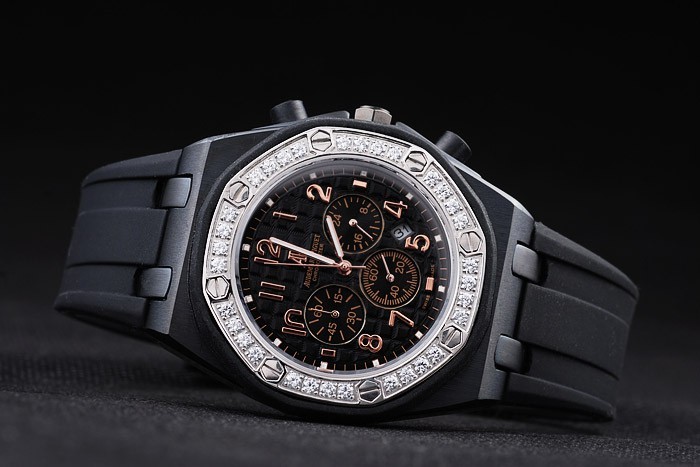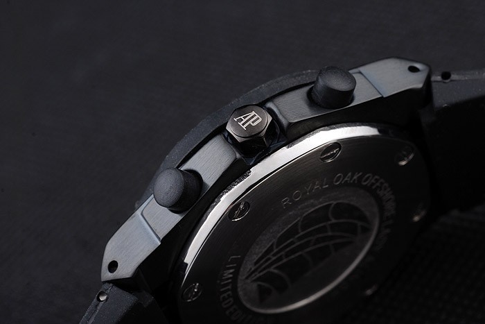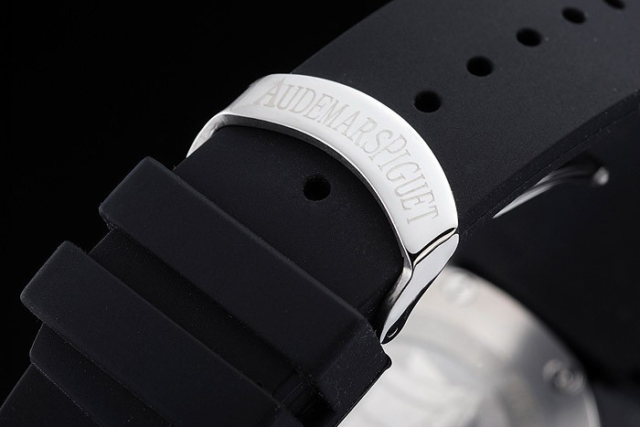 Bracelet de acero inoxidable: Audemars Piguet repujado correa de caucho negro con Audemars Piguet grabado de acero inoxidable plegado hacia dentro clasp