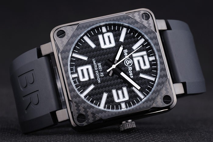 Bracelet de acero inoxidable: Bell & Ross logo y el producto de código en relieve correa de caucho negro con iones niquelado gancho hebilla clasp