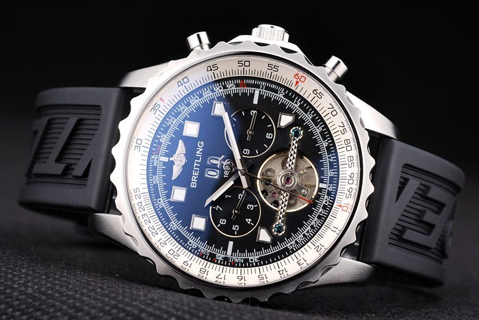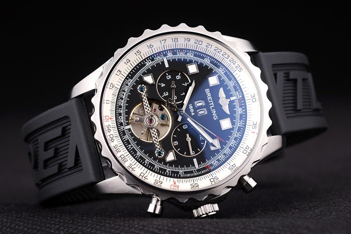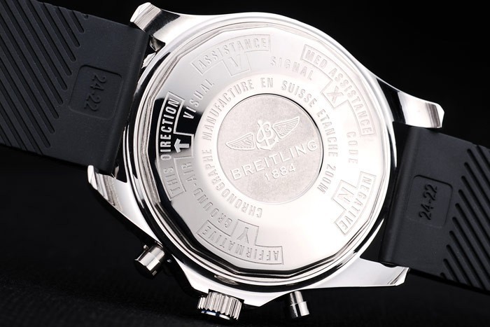 Este reloj tiene el vidrio AR. El color de la cara aparecerá diferentes colores dependiendo de cómo la luz cae sobre itBack: Acero inoxidable pulido complemento de vuelta con Breitling engravings
