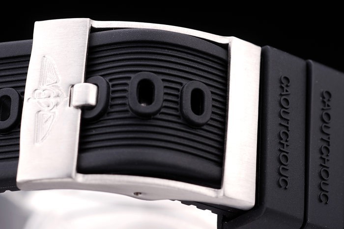 Bracelet de acero inoxidable: correa de caucho Negro con Breitling logotipo grabado de acero inoxidable gancho hebilla clasp