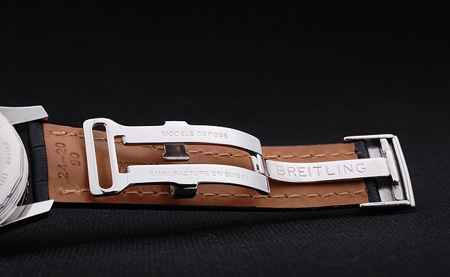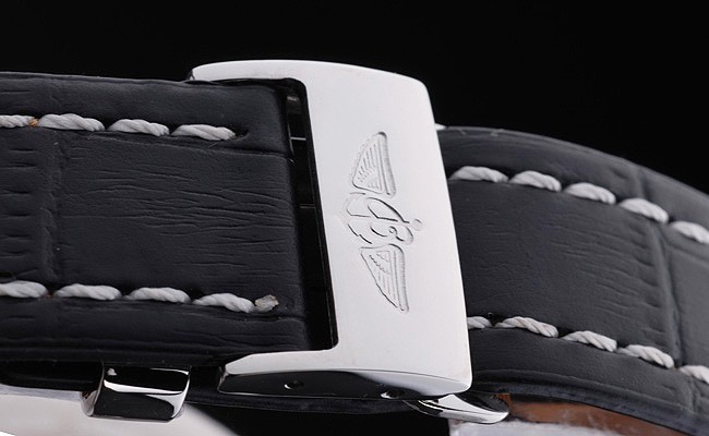 Bracelet de acero inoxidable: correa de cuero Negro cocodrilo con patente costuras de color blanco y el calor en relieve grabados Breitling y grabado pliegue de acero inoxidable en el corchete con el logotipo de Breitling en top