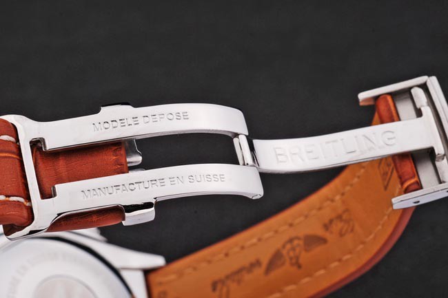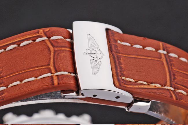 Bracelet inoxidable 440-grado: Russet roja piel de alta calidad en un cocodrilo patrón, con las costuras de algodón pesado blanco. banda interior está grabado con el nombre y el logotipo de Breitling, y tiene un cierre hebilla de acero.