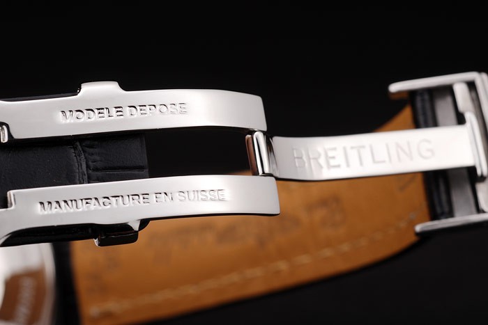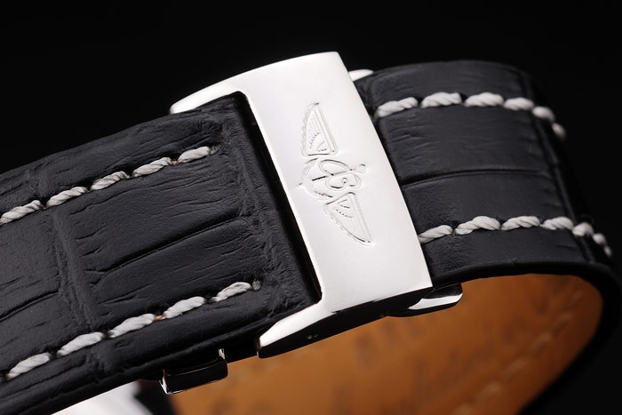 Bracelet de acero inoxidable: El calor en relieve de piel de cocodrilo negro Breitling correa con costuras de hilo blanco y un logotipo de Breitling grabado de acero plegable en clasp