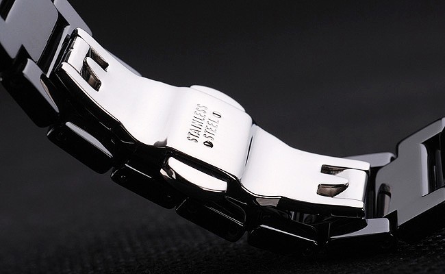 Bezel: 440 acero inoxidable, grabado, revestido en plástico negro.