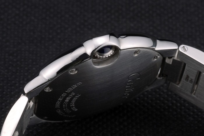 Volver: Acero inoxidable pulido atornillado en la parte trasera con grabados de Cartier