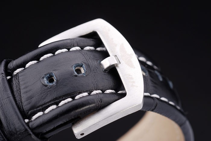 Bracelet de acero inoxidable: Breitling 1884 y correa de cuero negro en relieve el logo característico con costuras de color blanco y acero inoxidable gancho hebilla clasp