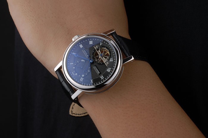 Complicaciones Breguet Classique caja de acero inoxidable Negro 80157 correa de cuero