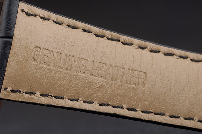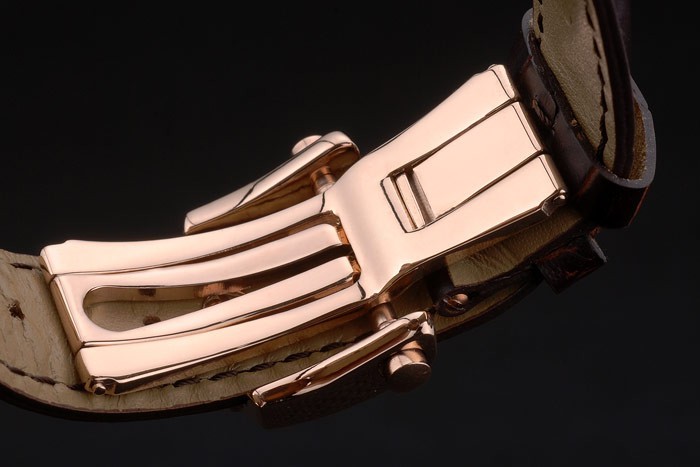 Bracelet de acero inoxidable: correa de piel de cocodrilo negro de calor en relieve Breguet Brequet grabado rosa de 18 quilates chapado en oro plegable en el gancho de la hebilla clasp