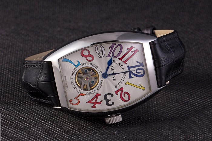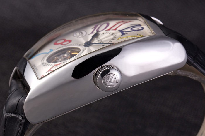 Franck Muller Casablanca Negro correa de cuero de Croco esfera blanca 80280