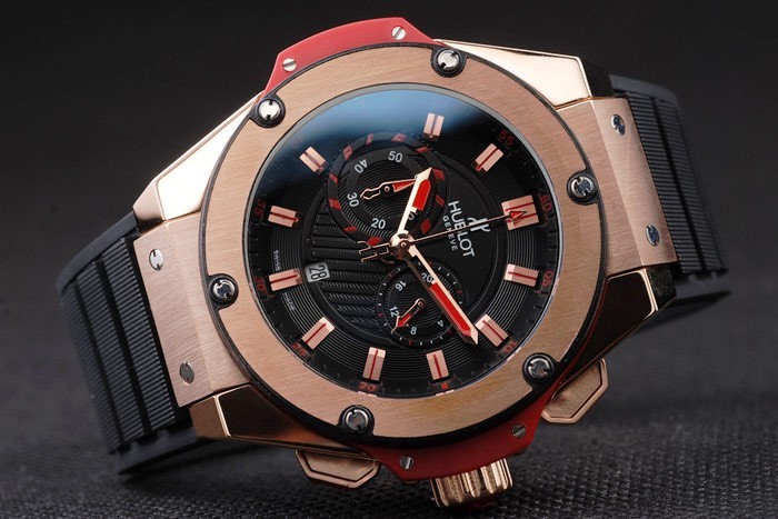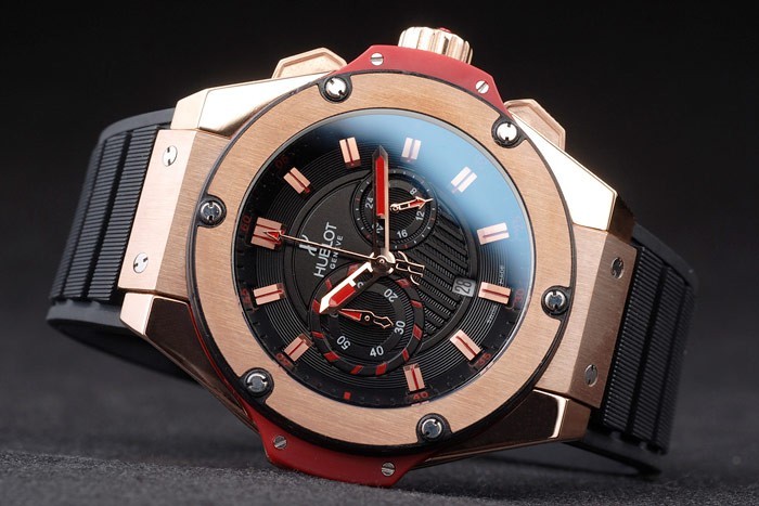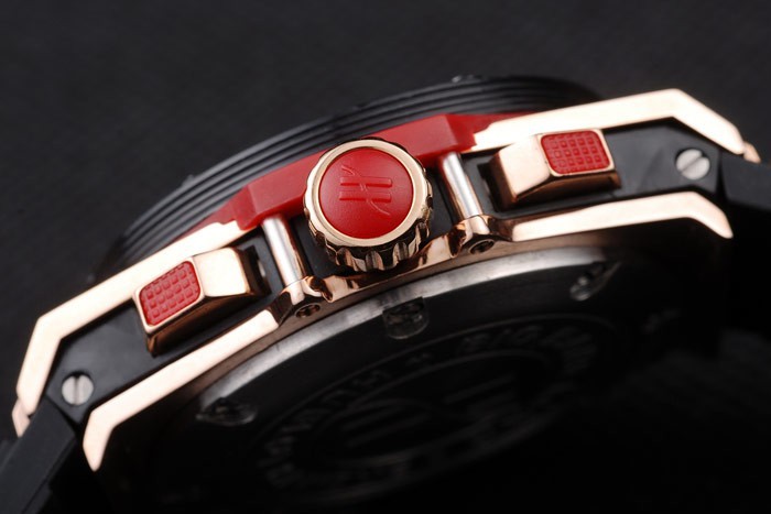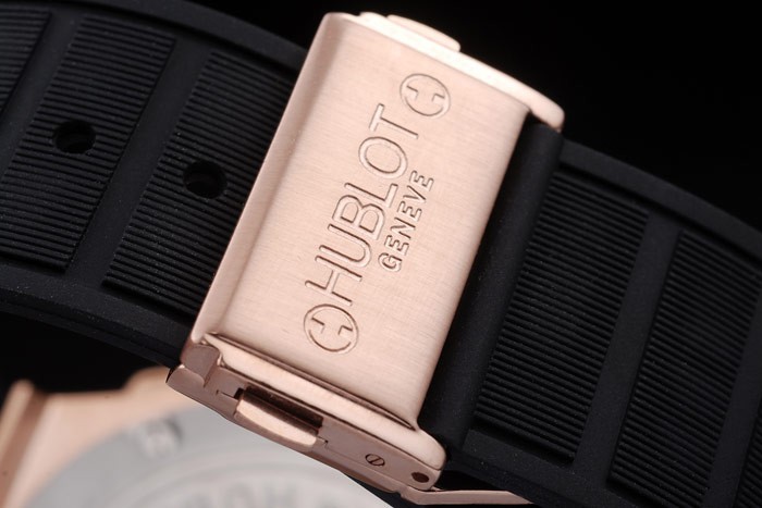 Bracelet rojo: banda de goma negro con textura con oro rosa de botón corchete del gancho y Hublot engravings