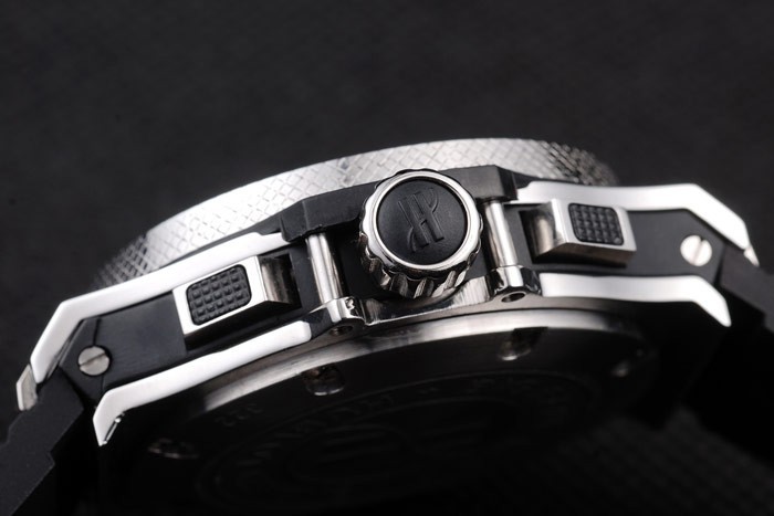 Bracelet de acero inoxidable: banda de goma negro texturado con acero inoxidable cierre de botón gancho y Hublot inscriptions