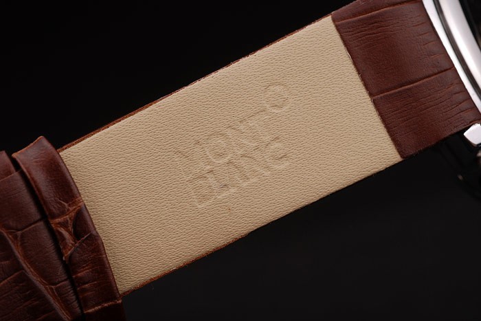 Bracelet de acero inoxidable: correa de cuero MontBlanc calor en relieve de cocodrilo marrón con MontBlanc grabado de acero inoxidable pulido de gancho de la hebilla clasp