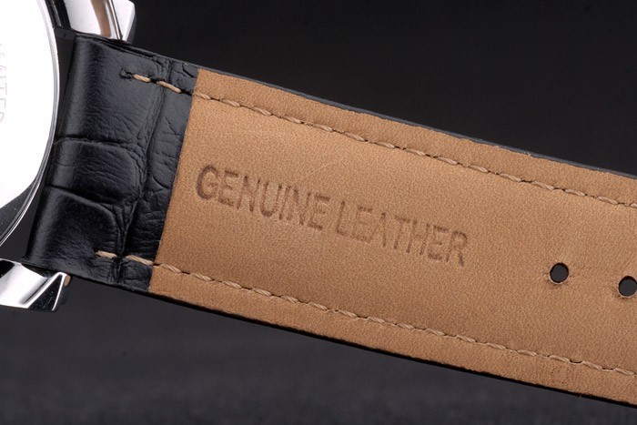Bracelet de acero inoxidable: El calor en relieve correa de piel de cocodrilo negro MontBlanc con el nombre y el logotipo MontBlanc grabado pulido acero inoxidable flip-sobre el gancho clasp