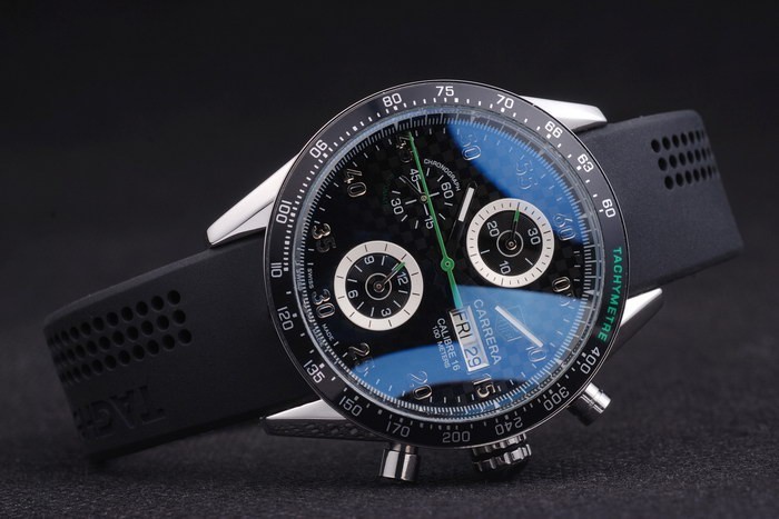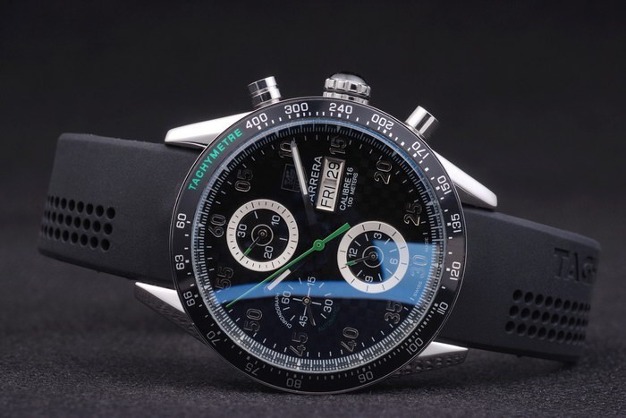 Bracelet acero inoxidable cepillado: Negro correa de caucho con Tag Heuer marcado y un clasp