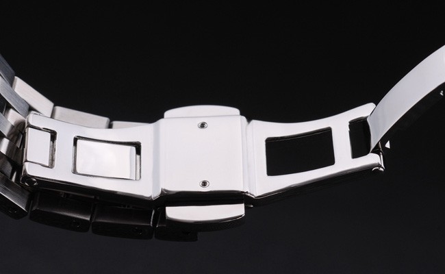 Crown: acero inoxidable pulido corona de calado con el logotipo de Omega más dos coronas adicionales, uno a cada lado de it