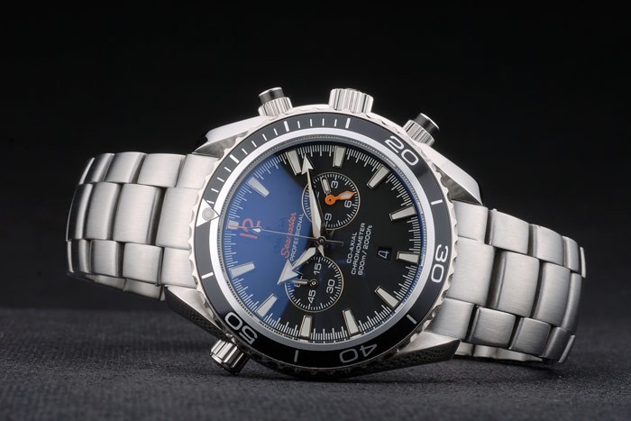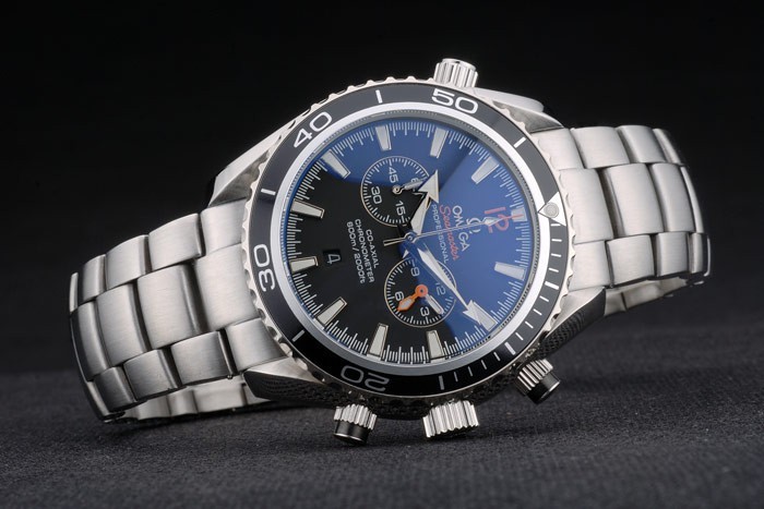 Omega Seamaster Planet Ocean Negro Negro taquímetro Dial de acero inoxidable Correa 80240
