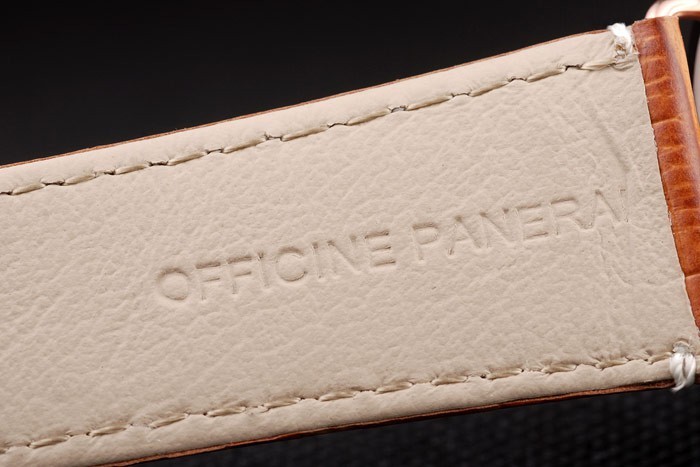 Bracelet: correa de piel de cocodrilo marrón con costuras blancas y el calor en relieve Officine Panerai Italia sello y rosa de 18 quilates chapado en oro broche de gancho de la hebilla con Panerai engraving
