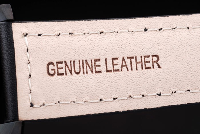 Bracelet de acero: correa de cuero Negro con el calor en relieve sello Luminor Panerai y acero inoxidable gancho hebilla de cierre de ion-plateado con Panerai engraving