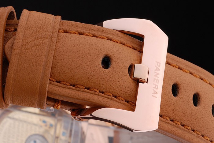 Bracelet: correa de cuero de color naranja con relieve de calor sello Luminor Panerai y Panerai marcado 18k oro amarillo plateado gancho hebilla clasp