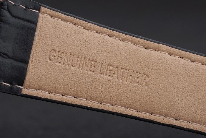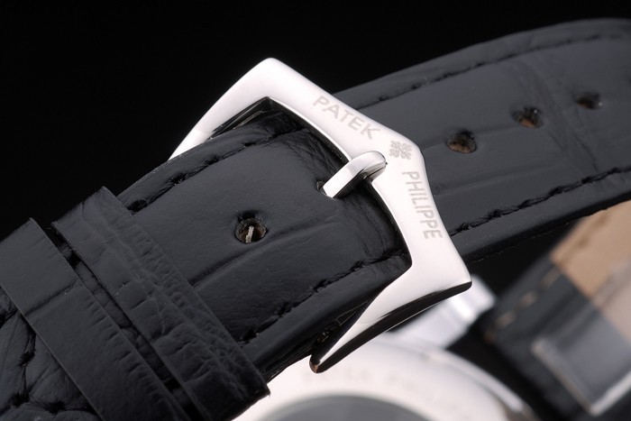 Bracelet de acero inoxidable: correa de piel de cocodrilo Negro con relieve de calor Sello Patek Philippe y pulido de gancho de acero inoxidable hebilla de cierre con Patek Philippe engraving