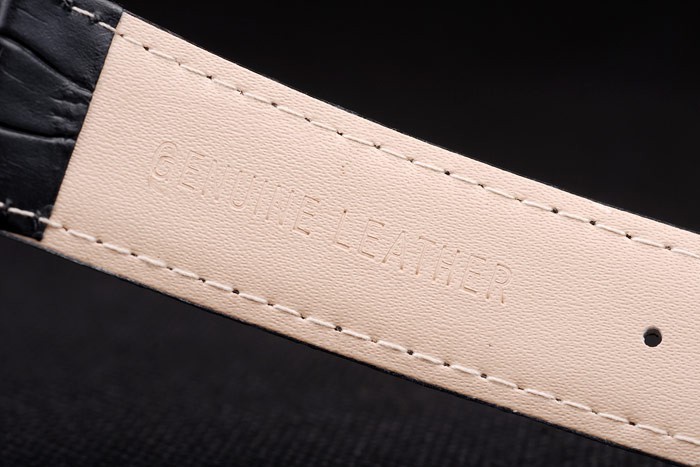 Bracelet de acero inoxidable: correa de piel de cocodrilo Negro con relieve de calor Sello Patek Philippe y pulido de acero inoxidable gancho hebilla de cierre de con Patek Philippe engraving
