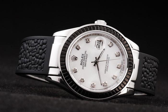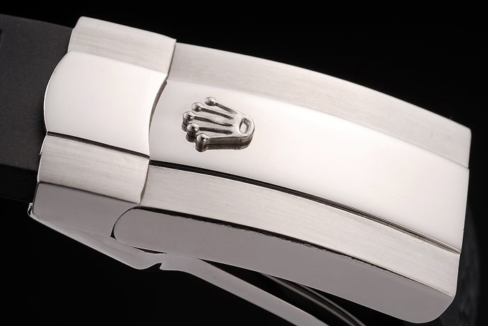 Bracelet de acero inoxidable: correa de caucho negro Diseñado con Rolex grabado plegable en el corchete con el logotipo de Rolex tallado en top