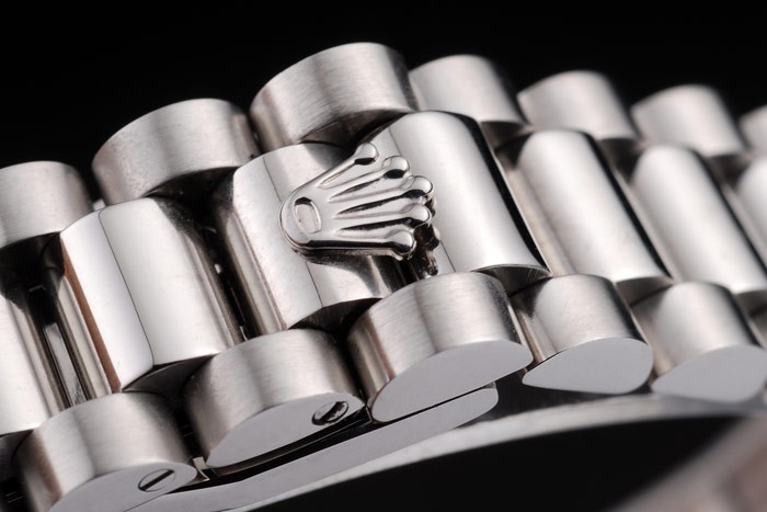 Bracelet acero inoxidable cepillado y pulido brazalete de eslabones de acero inoxidable con Rolex grabado cierre oculto que muestra la longitud Rolex logo