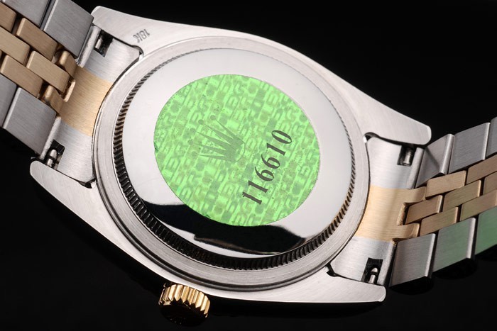 Volver: Acero inoxidable empuje en caso de vuelta con el verde Rolex logo stamp