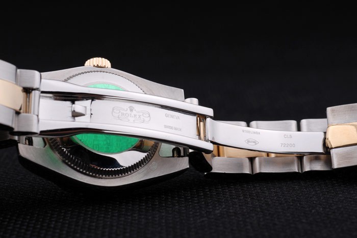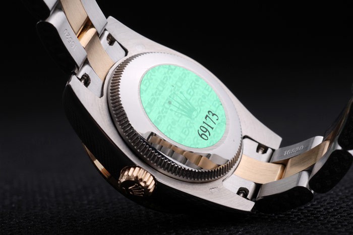 Volver: Caja de acero inoxidable de empuje en la parte trasera con el verde Rolex logo stamp