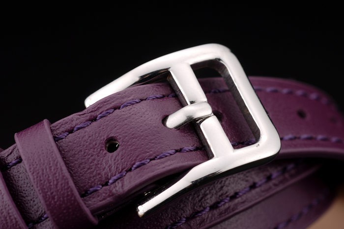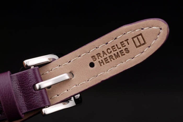 Bracelet de acero inoxidable: correa de cuero púrpura alargada con calor marca en relieve la pulsera de Hermes y Hermes grabado de acero inoxidable pulido gancho hebilla de cierre de