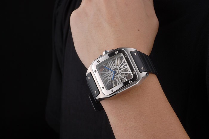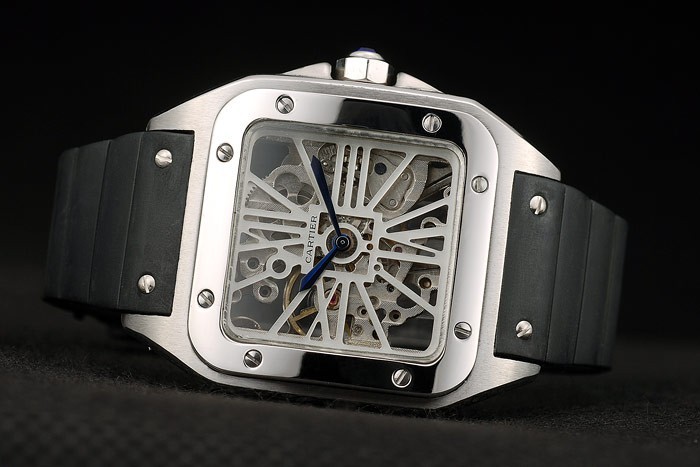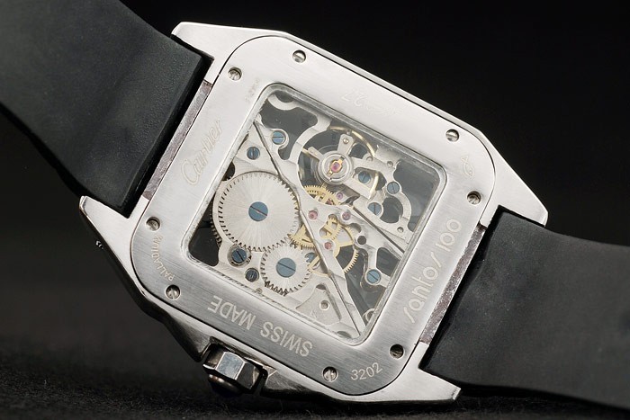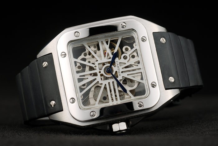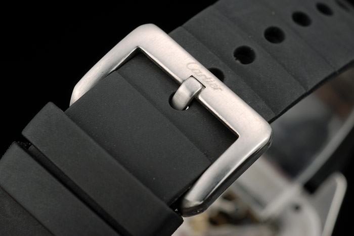 Bracelet de acero inoxidable: correa de caucho Negro con Cartier inscrito acero inoxidable cepillado de gancho hebilla clasp