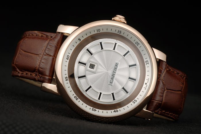 Bracelet: calor Cartier en relieve correa de piel de cocodrilo marrón con hebilla de Rose clasp