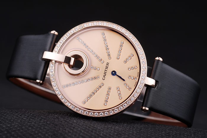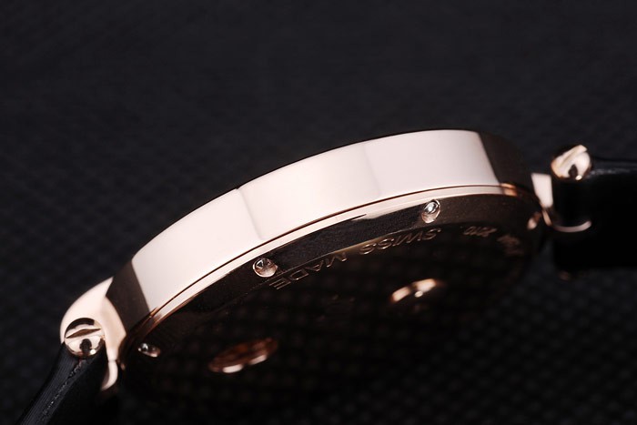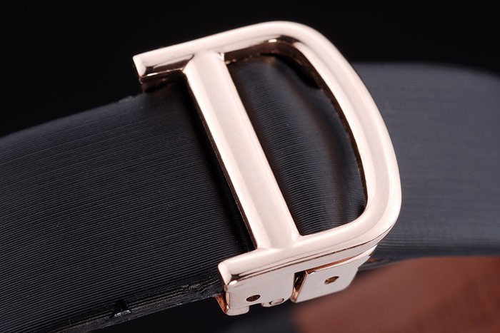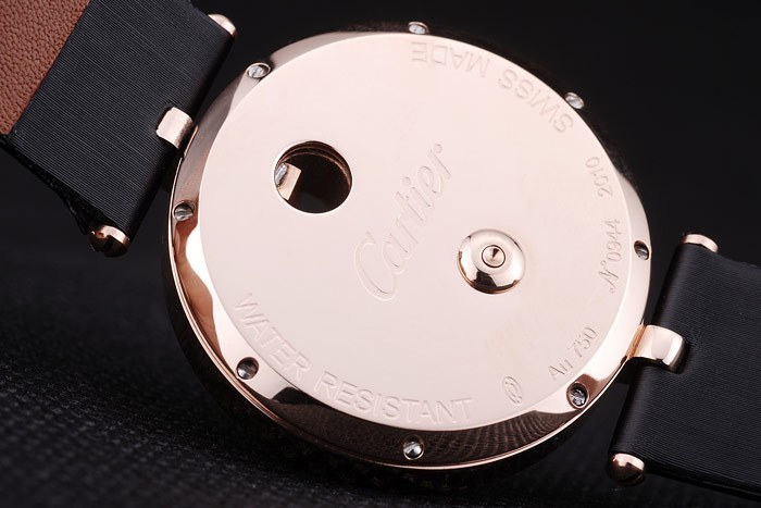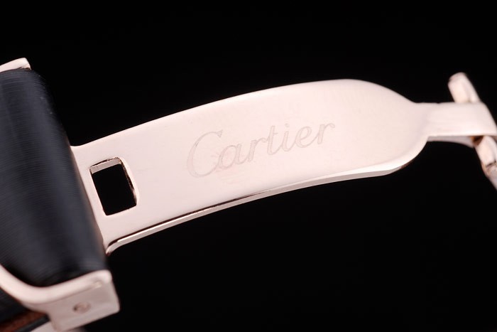 Bracelet: Calor en relieve correa de cuero negro con textura de Cartier Cartier oro rosa con inscripciones plegado en modo de tapa Longitud clasp