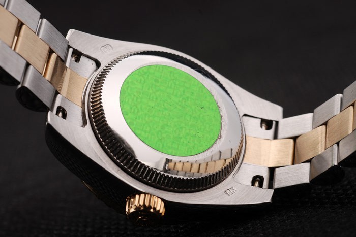 1Back: Empuje en acero inoxidable de nuevo con la etiqueta engomada Rolex verde y markings