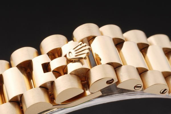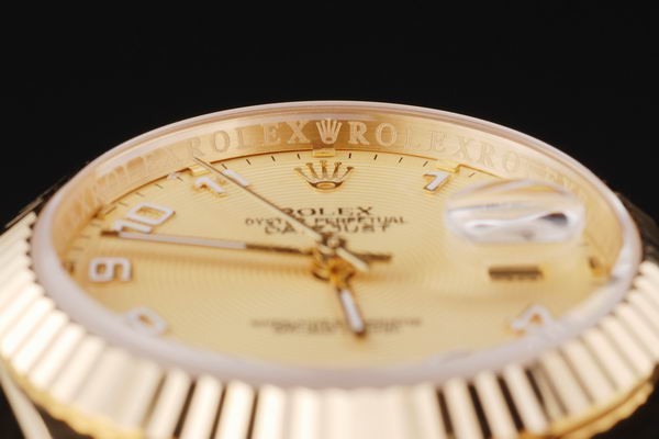 Back: Empuje hacia atrás en oro amarillo de 18 quilates con la etiqueta engomada Rolex verde y markings