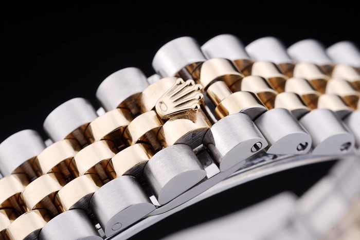 Bracelet acero inoxidable cepillado de acero inoxidable y oro amarillo acoplamiento de la pulsera con el logo de Rolex oculto Longitud clasp
