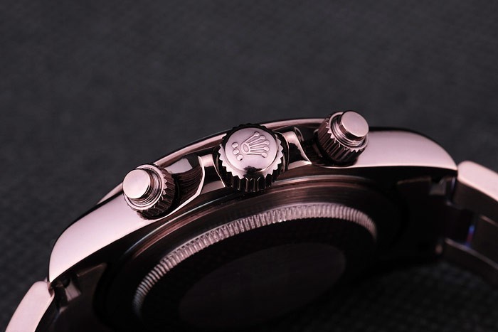Crown de seguridad: Rosy corona calado de acero inoxidable de color marrón con el logotipo de Rolex y dos pulsador más pequeño coronas cutwork a ambos lados de it