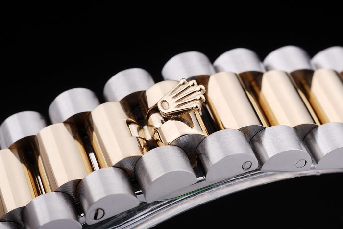 Bracelet acero inoxidable cepillado de acero inoxidable y oro amarillo acoplamiento de la pulsera con el logo de Rolex oculto Longitud clasp