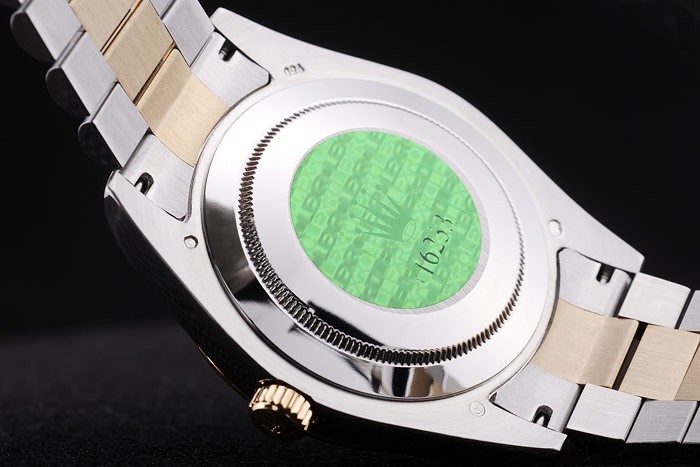 Volver: Acero inoxidable complemento de vuelta con verde Rolex sticker