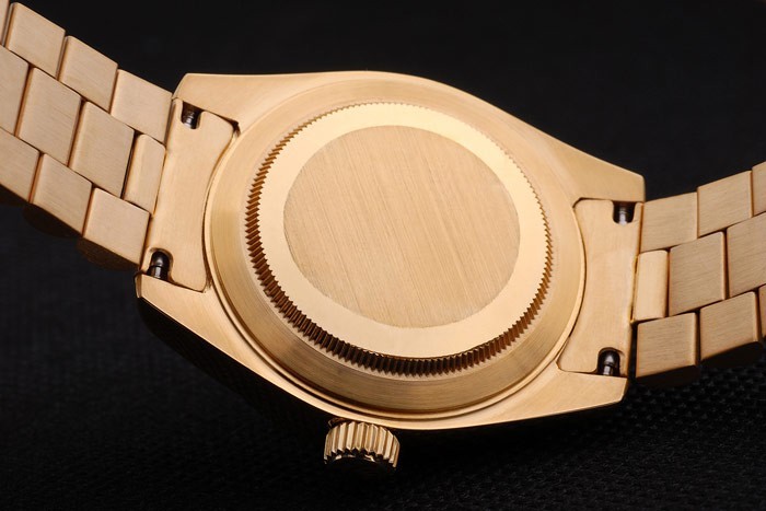 Volver: empuje amarillo de oro en la parte trasera con Rolex markings