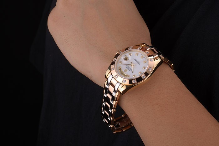 Crown: rosa de 18 quilates chapado en oro de la corona calado de acero con Rolex logo