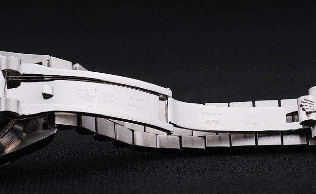 Bracelet acero inoxidable cepillado y pulido brazalete de eslabones de acero inoxidable con grabado Rolex cierre oculto que muestra la longitud Rolex logo