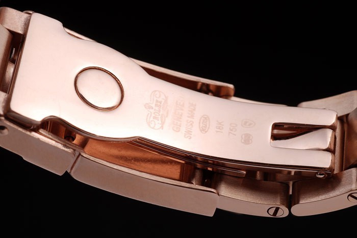 Bezel: 18k bisel de oro rosa con unidades negras según el tipo de hora marker